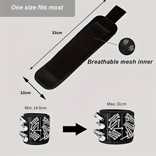 Snažni magneti u ovoj narukvici lako se omotaju oko vašeg zgloba, držeći male metalne predmete poput vijaka, čavla i matica na dohvat ruke.