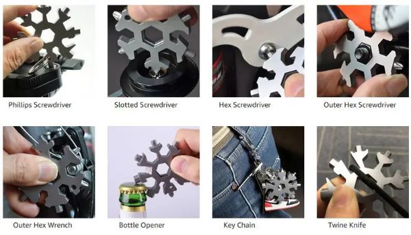 Alat MULTIFLAKE može se koristiti za otvaranje pivske boce, zavrtanje vijaka, popravak snowboarda, bicikla, igračaka i više.